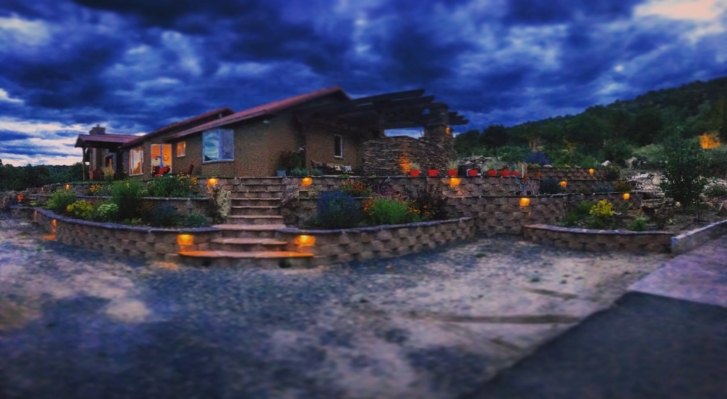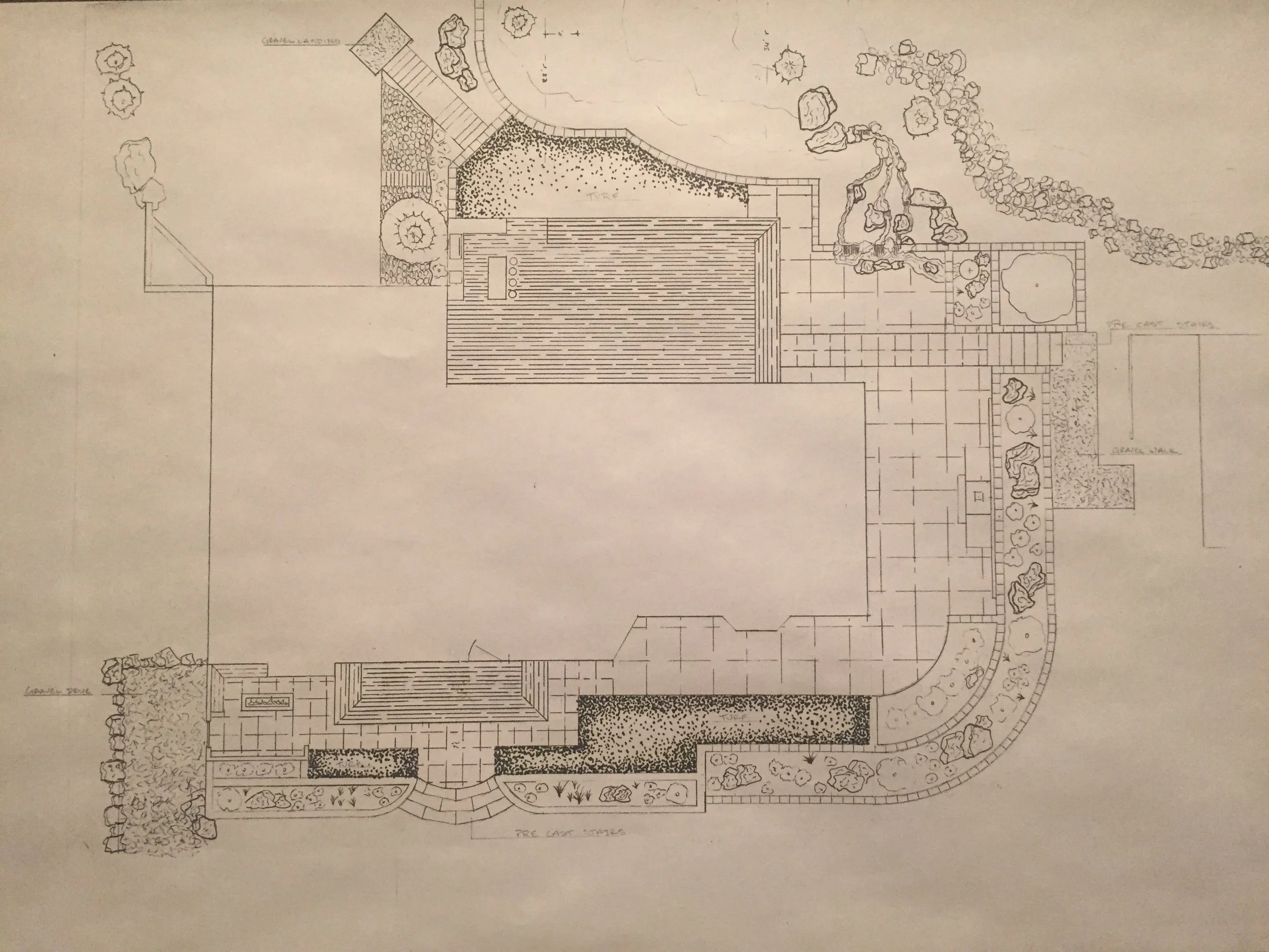 This was a project I really had no business taking on but… like I said, I love the unknown. From concept to design, build and finish work. This was technically my first try at any of it. The project took just under 6 mo. and consisted of over 900 tons of materials installed. We installed over 200 ton of natural stone boulders, 1400 90lb concrete retaining blocks, countless truckloads of aggregates, trex decking, pergolas, outdoor wood burning fireplace, gas fireplace, 100 ft stream with 15’ of waterfall. Low voltage landscape lighting, wirelessly controlled irrigations systems and 38 yds of concrete flatwork. Not bad for a first try!