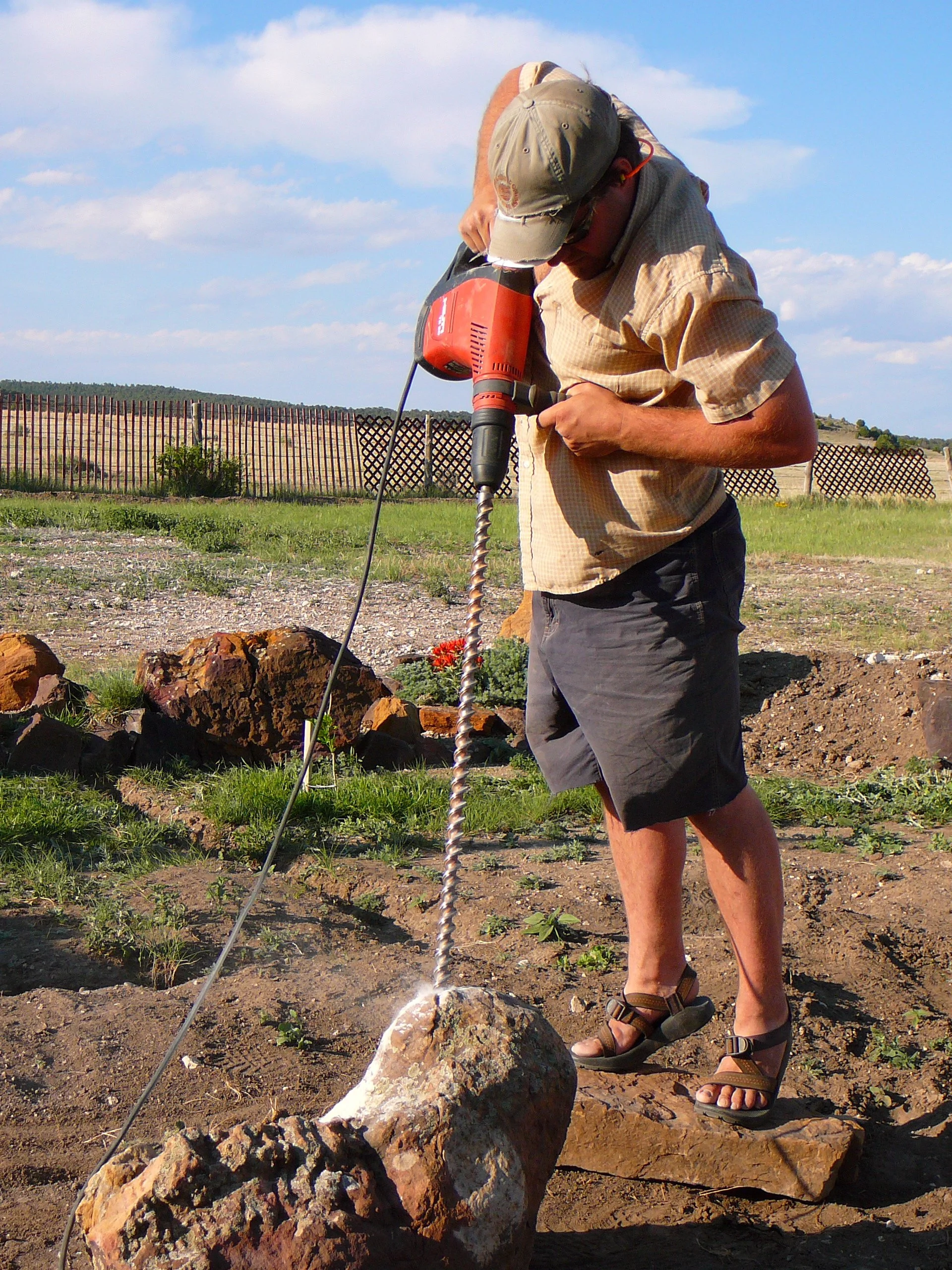 Prepping some stone for a water feature! Yes, I do almost everything in my chacos.