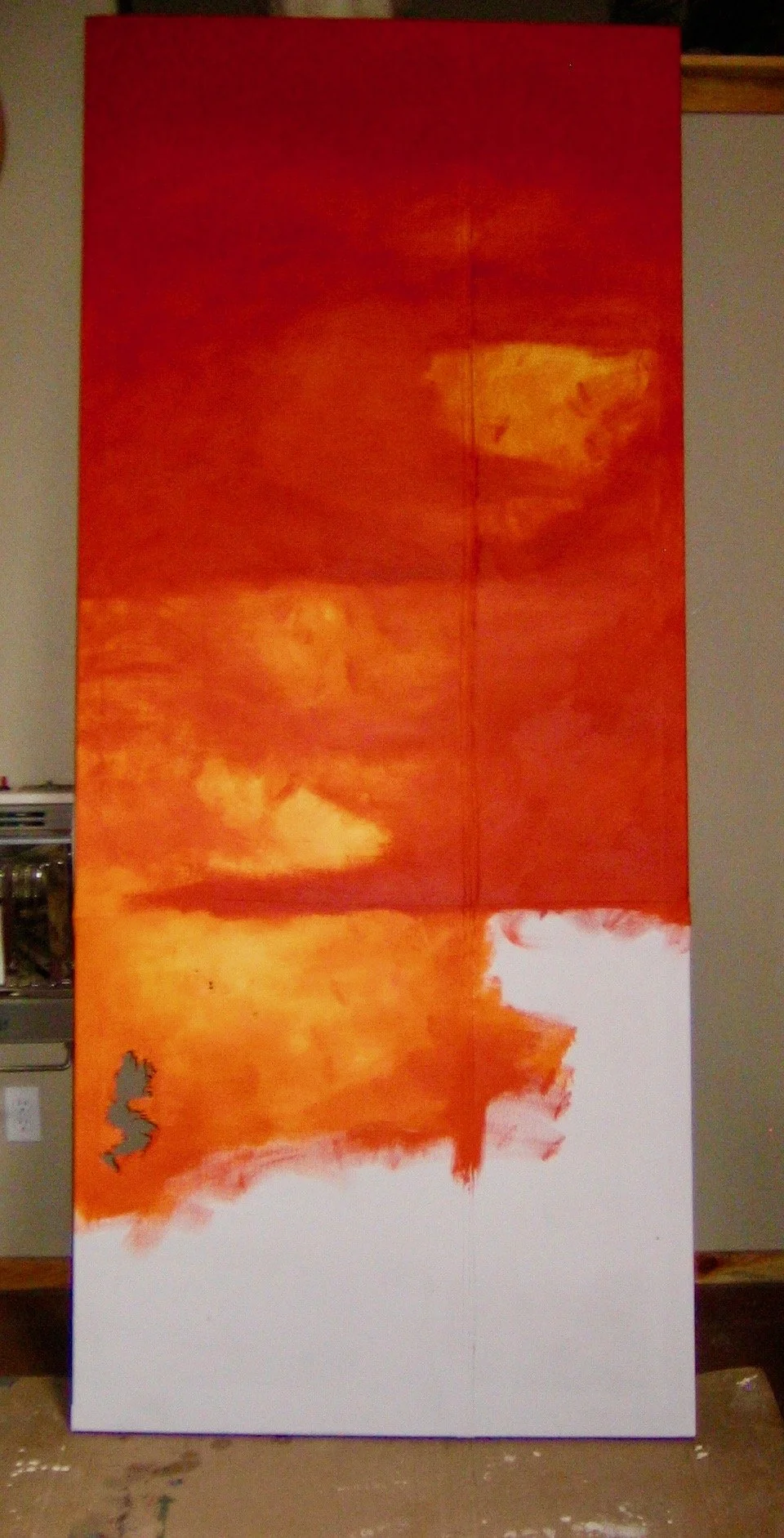 I started by painting small 2” squares and little rectangles… 5 or 6 of them but Im not drawn to small art. So its time to go big! I built this canvas out of reclaimed wood and an old canvas wall tent that was now out of commission. I made a LOT of canvases out of that tent.