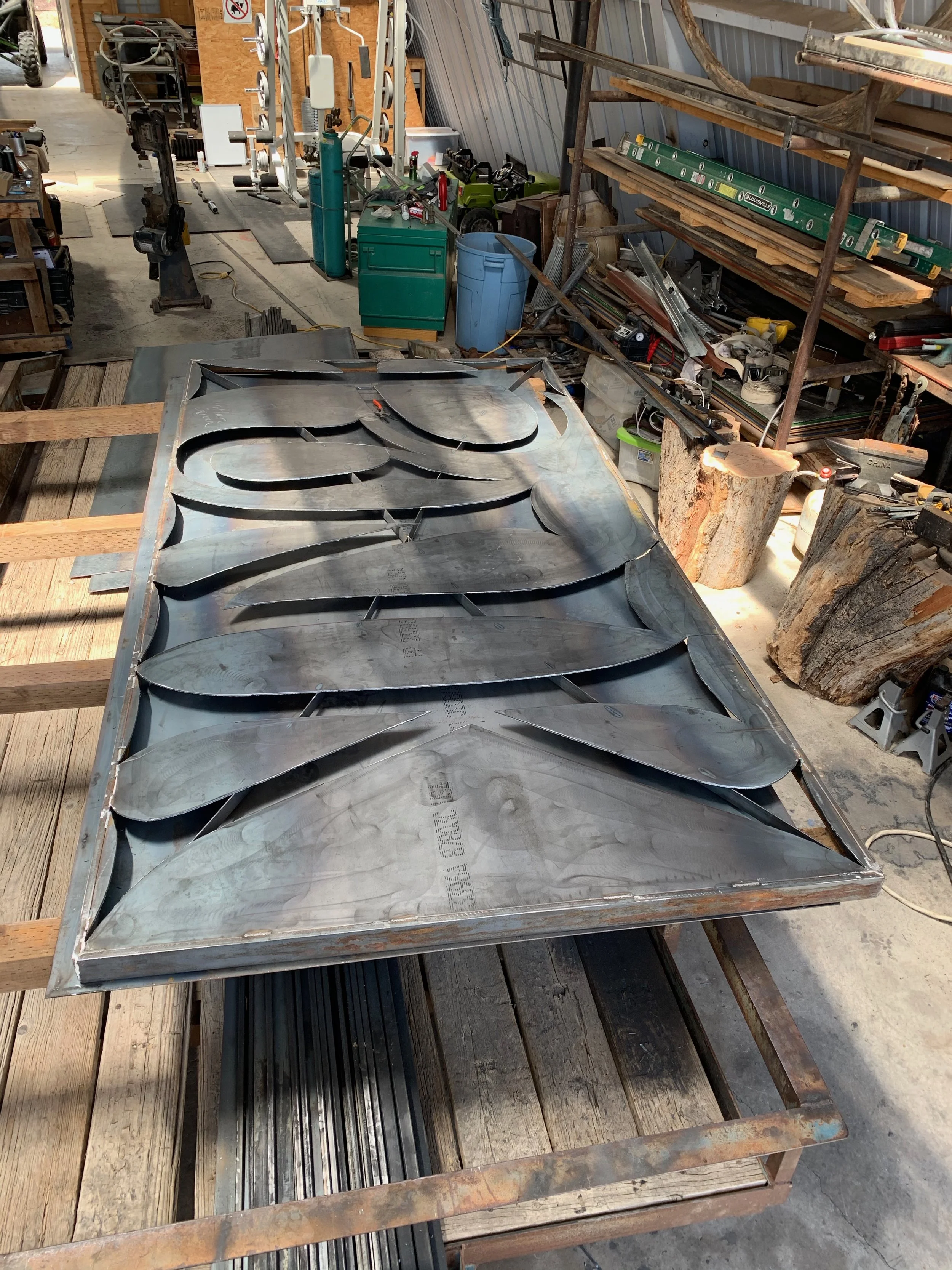 Lets DanceRemnants of the gold and silver mining that were so prevalent in the San Juan mountains. Rusted steel, flagstone. 18’ w x36”l x 24” t weighs 275 lbs.