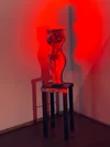 One of the first big pieces of furniture I created. This is made up of over 100 pieces of both mild and galvanized sheet steel, concrete, multiple light sources and colored papers. I never had a chance to weigh it. I would estimate it at 3,000 lbs ! The concrete top is made of several pieces made to fit together. I was just learning to play guitar at this point in life and was very inspired by the shapes of electric guitars. I listened to a lot of Jimmy Hendrix in order to get this built.