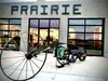 "The Chopper" “The Chopper” is my most prominent and involved piece to date. It is constructed entirely of found objects, primarily old farm equipment. That equipment includes a 1920’s Oliver hay press, horse-drawn hay rake, and a couple of swather parts and pieces. It weighs somewhere around 1 ton and measures almost 20’ long, the front wheel is 60” tall. “ The Chopper” maintains many of the functional aspects of the original equipment, with rolling wheels adjustable ride height, and a parking brake for good measure.